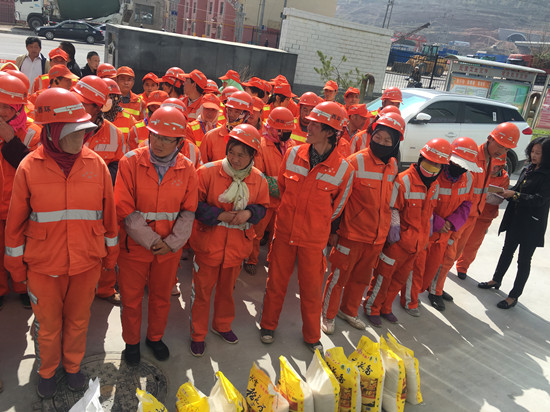 环卫工人为创造清洁西宁、幸福西宁做出了伟大贡献,为感谢他们的无私奉献,城西区红十字会在“五一 ”劳动节到来之际,为辖区60名环卫工人发放了米、面及食用油,价值共计13776元整。