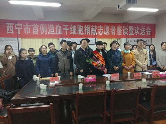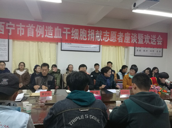2017年10月24日,西宁市首例造血干细胞志愿者座谈会暨欢送会在西宁市红十字会会议室举行。青海 省红十字会副会长才让卓玛、中国造血干细胞捐献者资料库青海分库副调研员窦利宁、造血干细胞志 愿者项阳及其母亲,青海大学、青海师范大学、青海民族大学志愿者代表参加座谈会,西宁市红十字 会常务副会长郭伟主持会议。