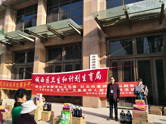 金风送爽、丹桂飘香,在传统敬老的九九重阳节,为进一步弘扬中华民族敬老、爱老、助老的传统美德,由城西区卫计局牵头,区红十字会联合西宁市红十字会于2018年10月17日,在虎台社区卫生服务中心门前开展主题为“营造敬老爱老社会氛围,纪念改革开放40周年”--关爱老年人专项慰问救助活动。